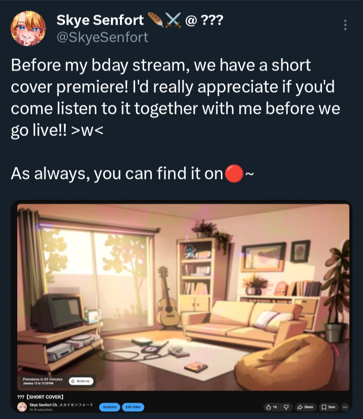 >>108569520>Why are they all getting more successfulIt's hard to exactly track the correlation, since Skye has been checked out for a long while (doubly so since the LLD) but she is in no way more successful now than her heyday. A few hundred dollars for a birthday stream isn't that much, especially because she's doing some pretty cute sketches for it
