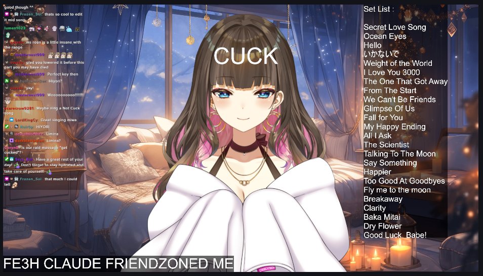 >>108558344blown out ntr cucktuber because she learns everything from mozzu. all vderes are whores with secret boyfs because mozzu made it okay. vdere trash