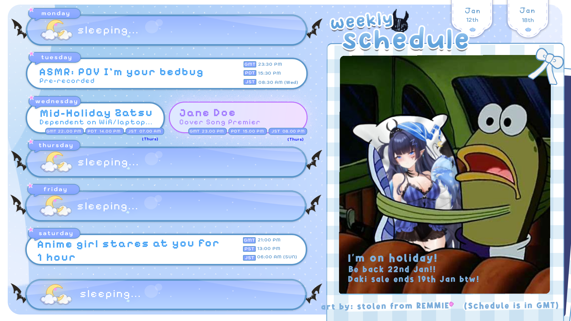 Serina making her schedule live on streamNot from Discord