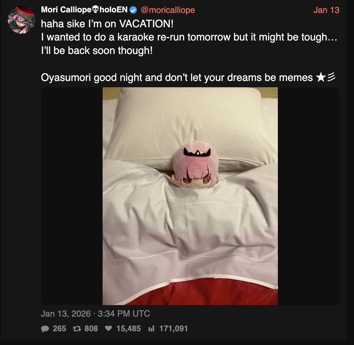 >>108615717It's kinda funny both her and Bae are on total radio silence and Mori's post invalidated that entirely, kinda selfish since they both value opsec and she's one of the top three most recognizable holos irl.