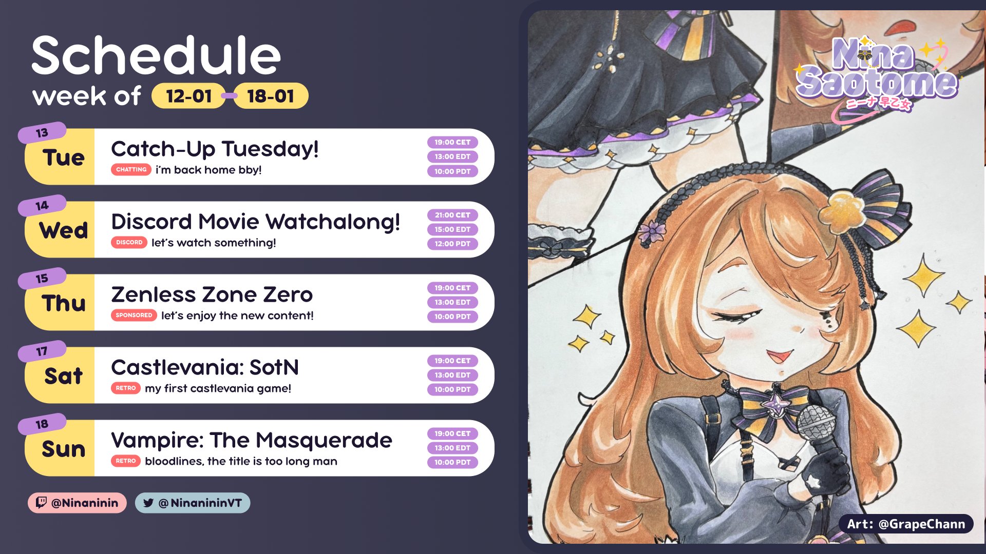 Catch-Up Tuesday! Time to refuel the Nininium!https://www.twitch.tv/ninaninin>who is Nina?Welcome to /nina/! This thread is dedicated to Nina Saotome, an indie VTuber and VSinger. Her content includes gaming (retro, kusoge, RPGs...), zatsudan and singing.She is known for her powerful and sultry singing voice, her sisterly personality and her hard work.>Interested in how Nina sings?Here is a small selection of her covers:https://www.youtube.com/watch?v=e8LkXeuwkwwhttps://www.youtube.com/watch?v=Tgf6qWaGuPAhttps://www.youtube.com/watch?v=MMF38a9B-n4https://www.youtube.com/watch?v=MXjuMwcvpQM>Other links and resources>Youtubehttps://www.youtube.com/@NinanininVT/videos>Twitterhttps://x.com/ninanininvtR18: https://x.com/hashtag/Ninintai?src=hashtag_click&f=live>Unofficial VOD archivesNew: https://youtube.com/@NinaVODsOld: https://youtube.com/@annalsoflevtia2846>Unofficial archive of various lewd OC, KK and sloppahttps://mega.nz/folder/hzcijZBD#TeezhbzpKoJulQTSvgzn9w>Related threadsLarge indies >>>/vt//lig/Western VTubers >>>/vt//wvt/Previous thread: >>108318819