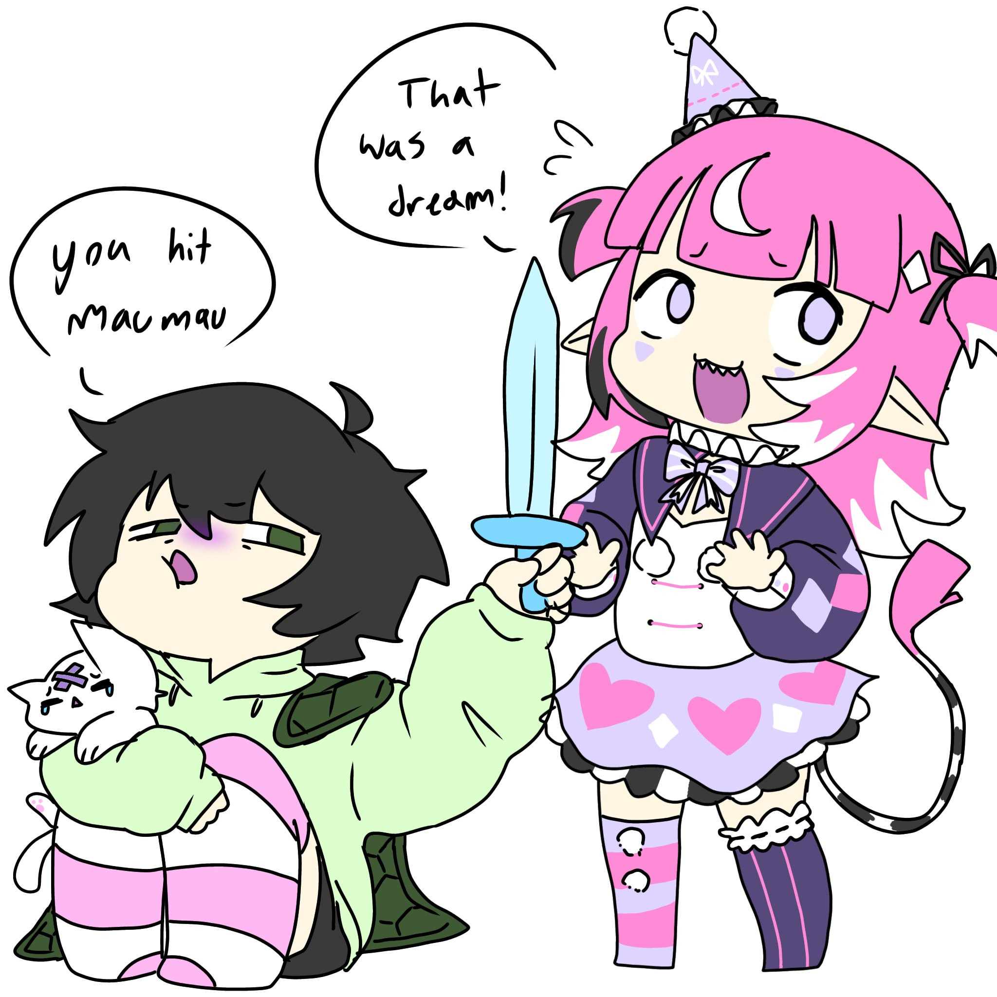 >>108592996Only difference is letter count, my bad. I'm struggling not to whip my dick out and beat it raw atm while thinking of puffy, hairless slits.>>108592974That sketch I shared a while back? Uh... probably after I finish working on comms, but I'll probably just start from scratch and do a completely different drawing of Neuro and Evil, assuming you aren't confusing me with someone else (I drew pic related).
