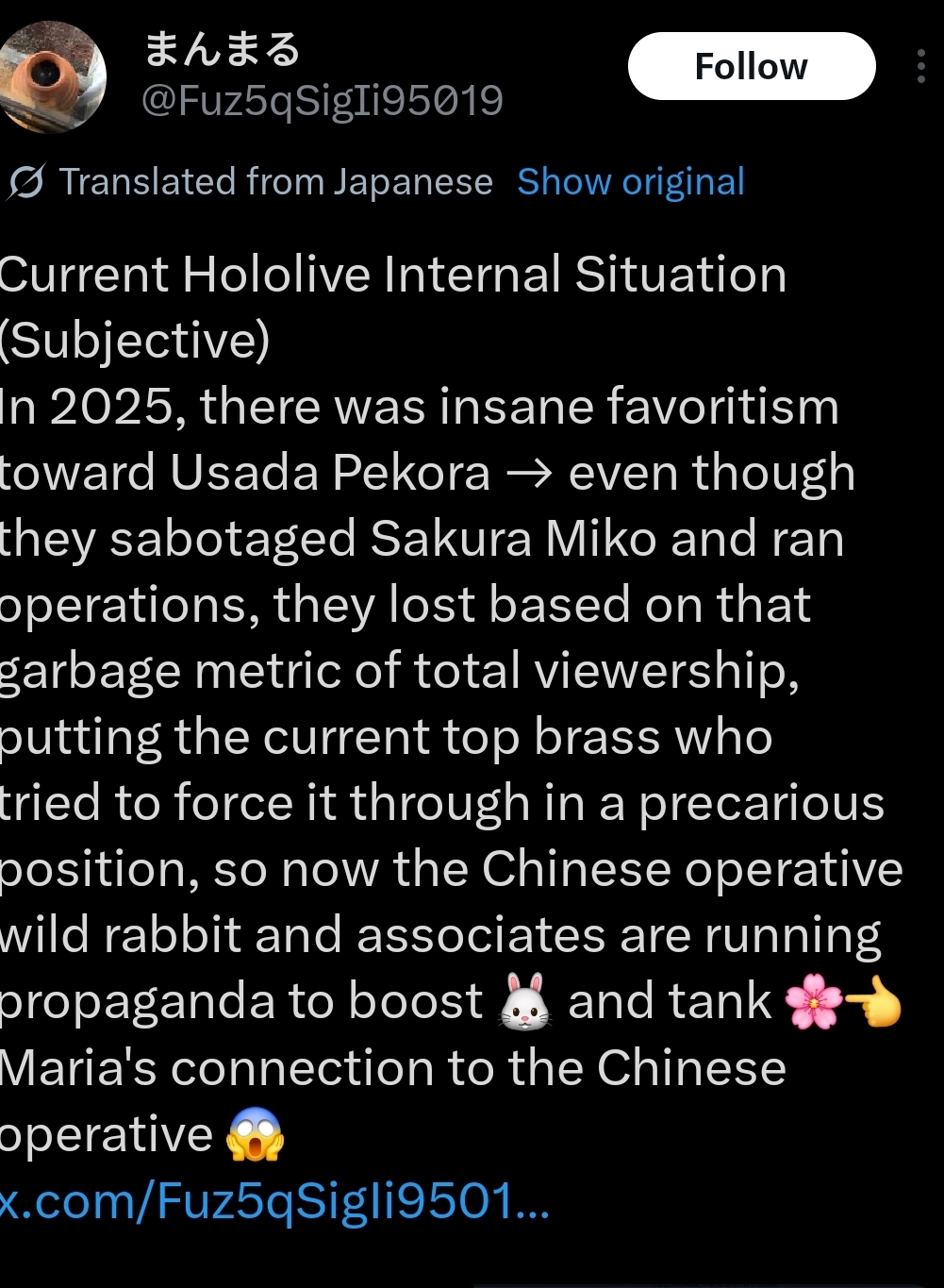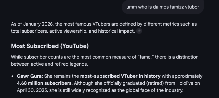 >>108597539>using pekora on top spot graph. So the biboo schizo is a pekorafag. Anti holo schizos are always the pekorafags.