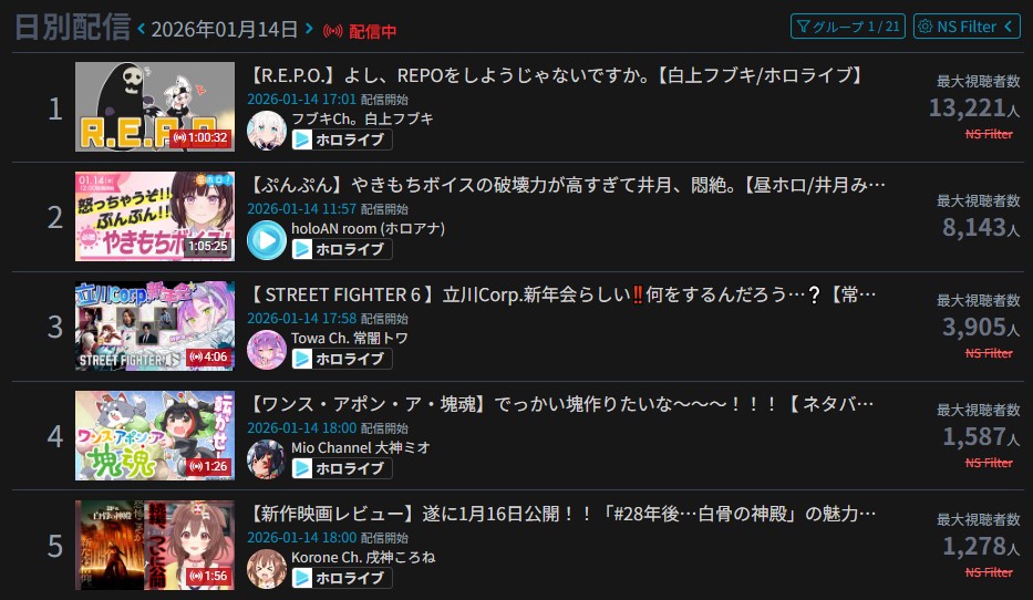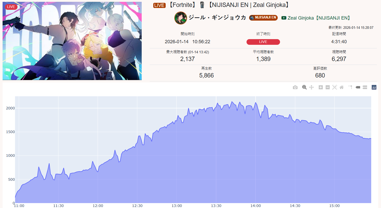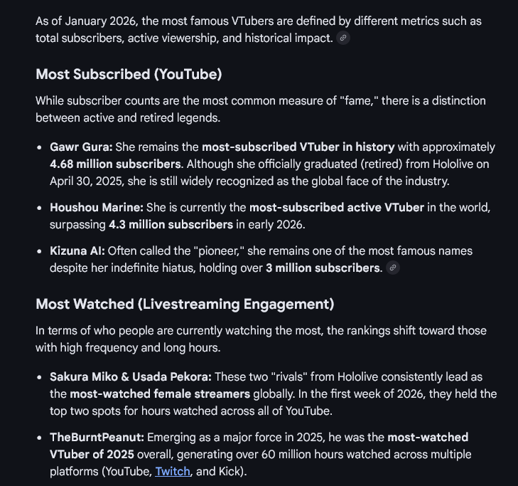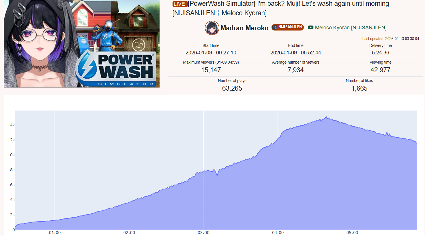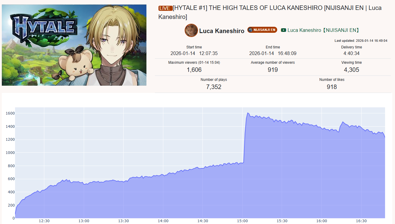 >>108597535no I think you're making shit up because all of their stats look normal while the actual botted niji streams can go to 15k and still not get over 1k likes