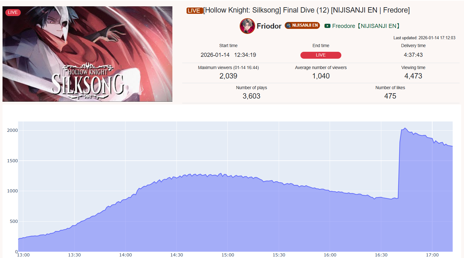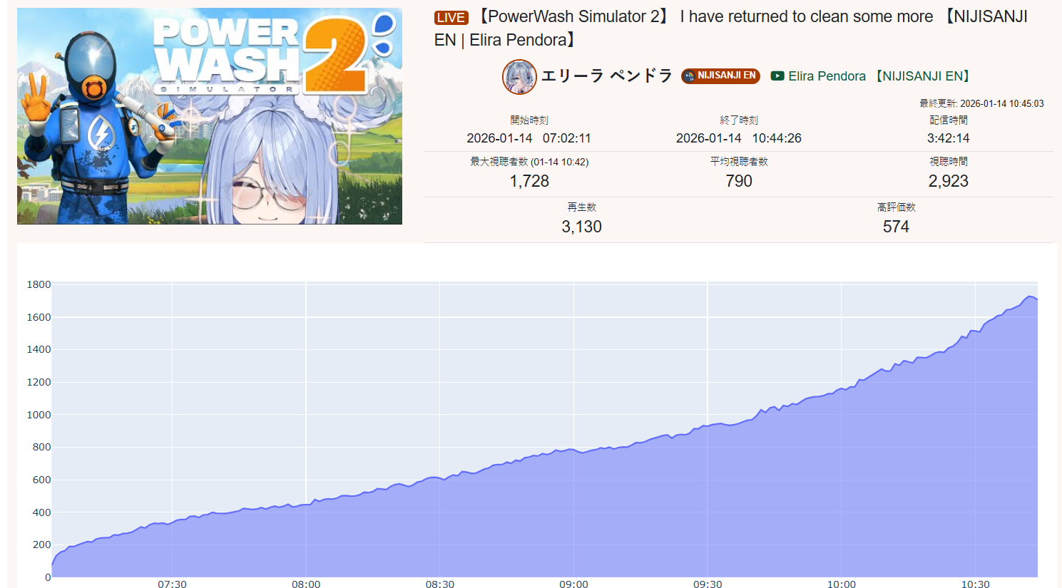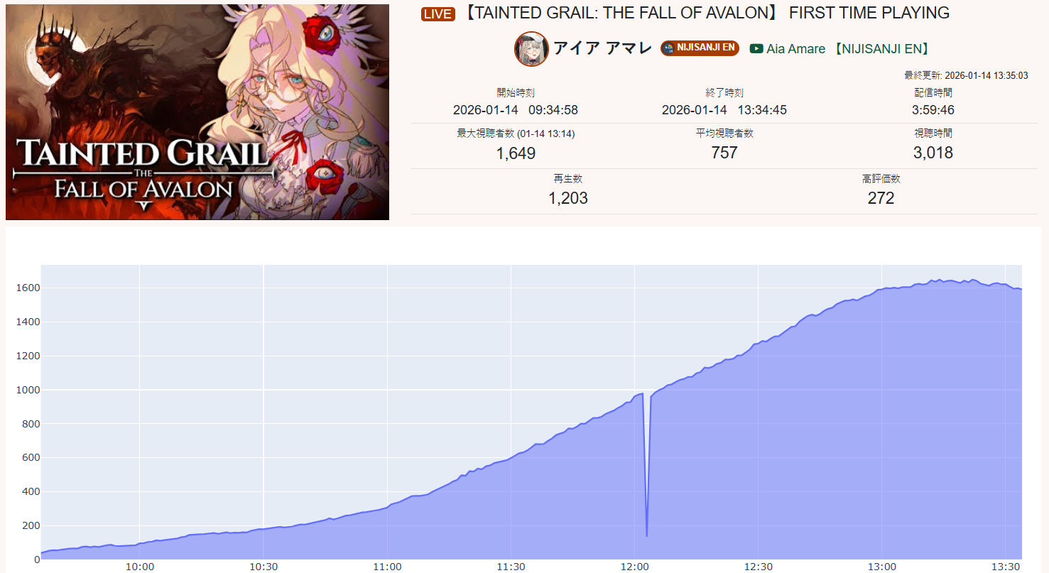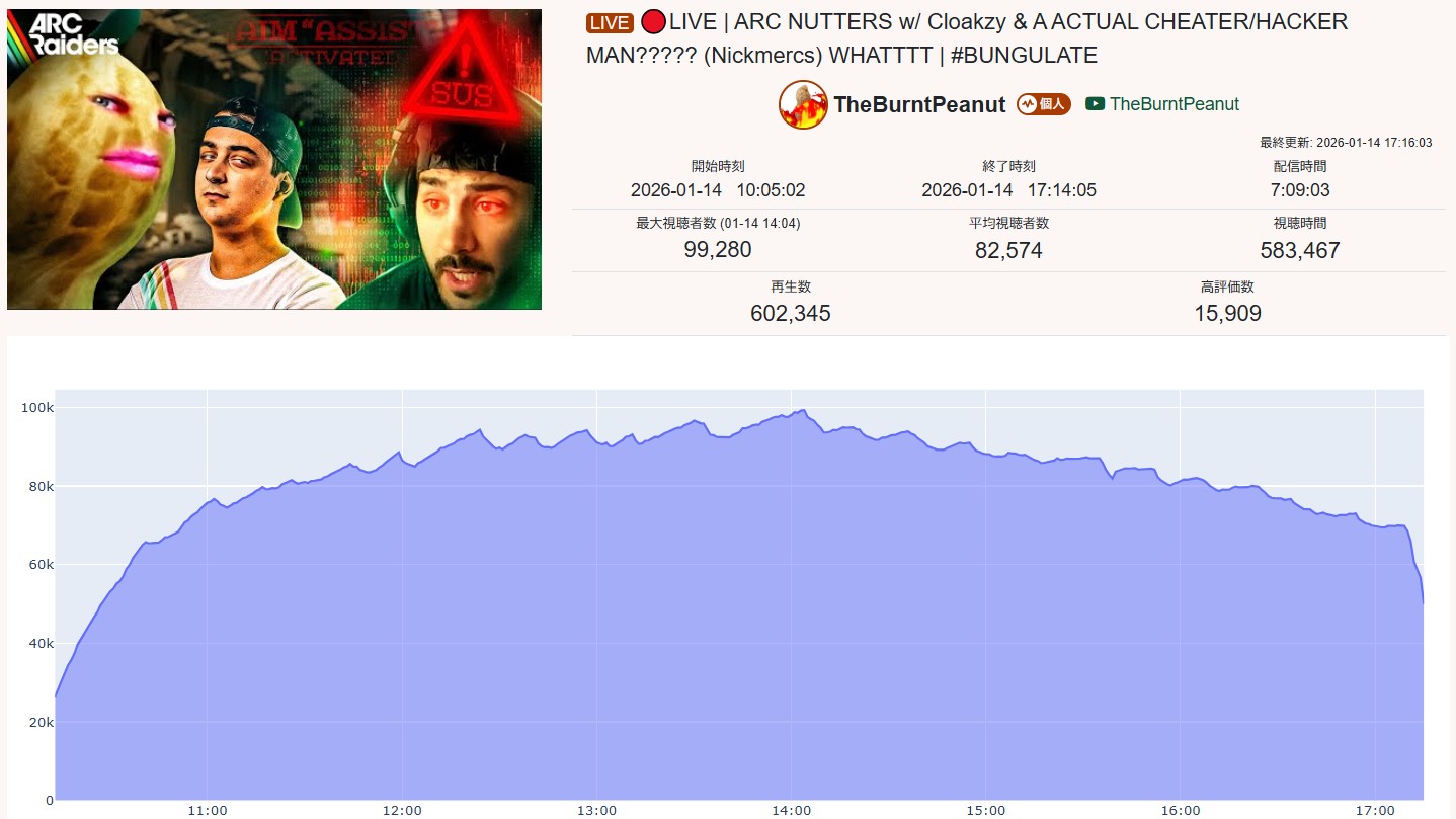 >>108597535no I think you're making shit up because all of their stats look normal while the actual botted niji streams can go to 15k and still not get over 1k likes