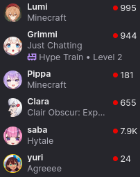 Tenma streams a ton but unlike Clio she almost exclusively plays dogshit. Her ability to spend like 8 hours straight playing the shittiest games ever made while being genuinely into it is crazy.