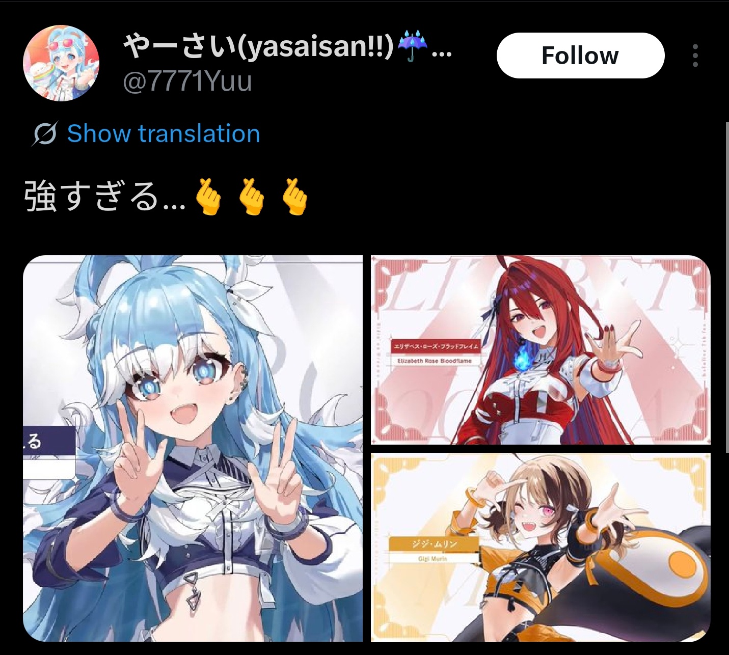 Other than Raora, Gigi is below girls who either are clearly stronger than her and nobody could pretend she is FWMC tier or girls who also have NA-heavy audiences. What are you even saying?