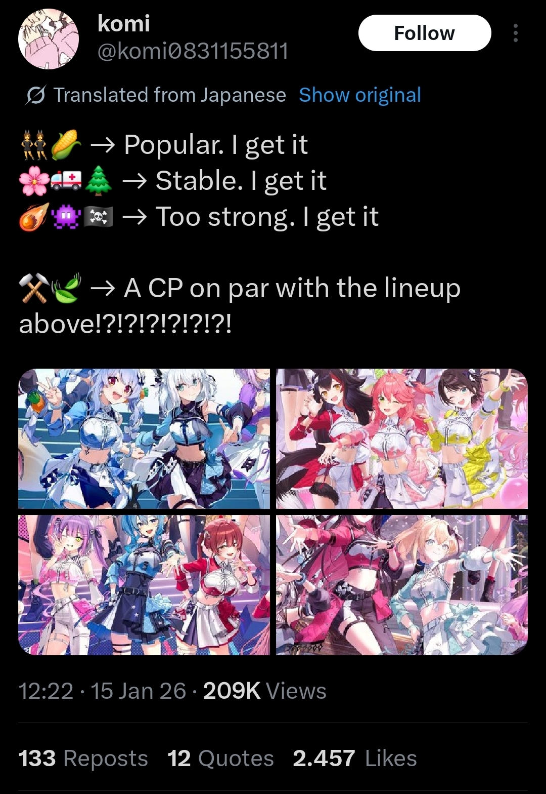 Nobody realize the main reason holostars are getting the broom closet treatmeant is not due to hololive or policy changes but sponsers. Sponsors only want hololive like the entire reason they were not included in the new year live is coke cola didn't want them. As Holo get bigger sponsers the more they exclude the stars.