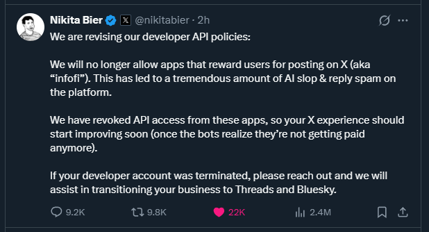 is this a good thing or a bad thing for the average user?https://x.com/nikitabier/status/2011825522817270230?s=20