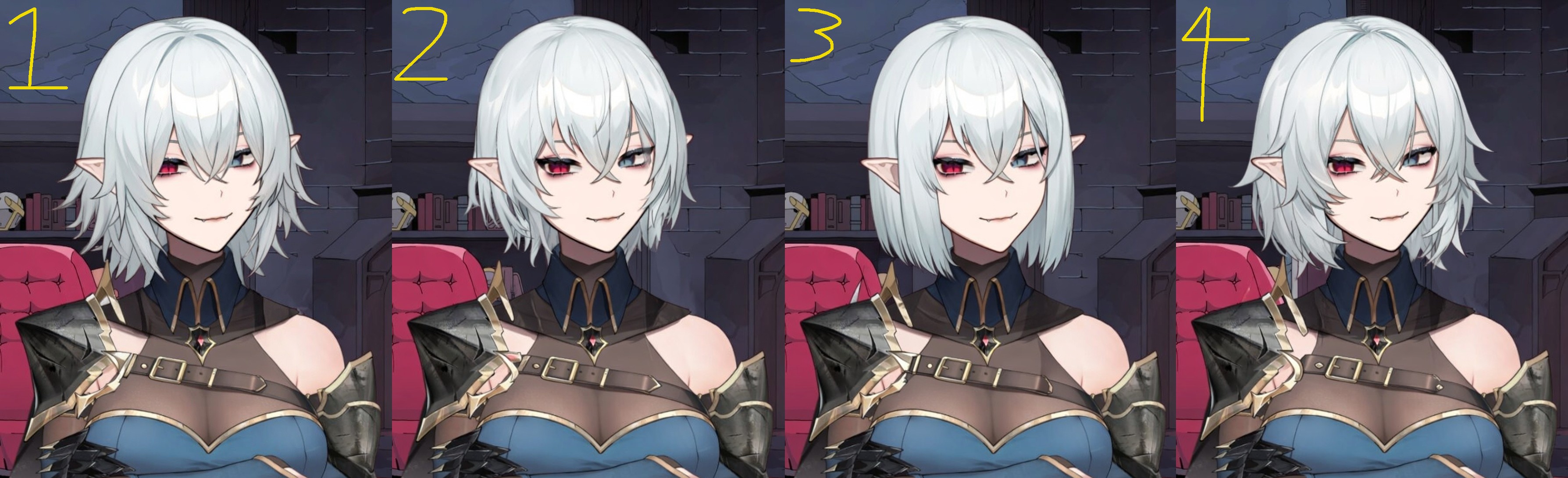 >>108640020>1Looks like a wig>2Too short>3Flat and doesn't fit that outfit >4Best one for an elf