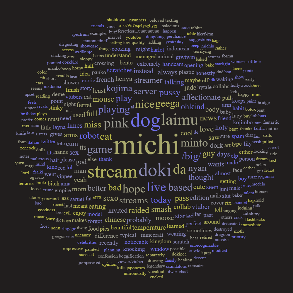 /BIG/ Ambitions Edition>What is /BIG/?/BIG/ is a thread to find, share, and discuss the biggest indie vtubers who have a 3-month average of 1000 viewers or more.>Can I shill my 999 CCV oshi here?No. 4views or higher only.>Live /BIG/shttps://vt.rita.moe/?tag=thread:/BIG/>Wordcloud creatorhttps://catalog.neet.tv/harlequin.html>/BIG/ logohttps://files.catbox.moe/jk4ric.png>Vod channelshttps://rentry.org/Indie_Vod_Archives_lig>Ferrets!https://www.twitch.tv/ferretsoftwareOther useful threads:>>>/vt//lig/>>>/vt//xvsj+/>>>/vt//swarm/>>>/vt//flip/>>>/vt//haha/>>>/vt//mint/Previous thread: >>108588798