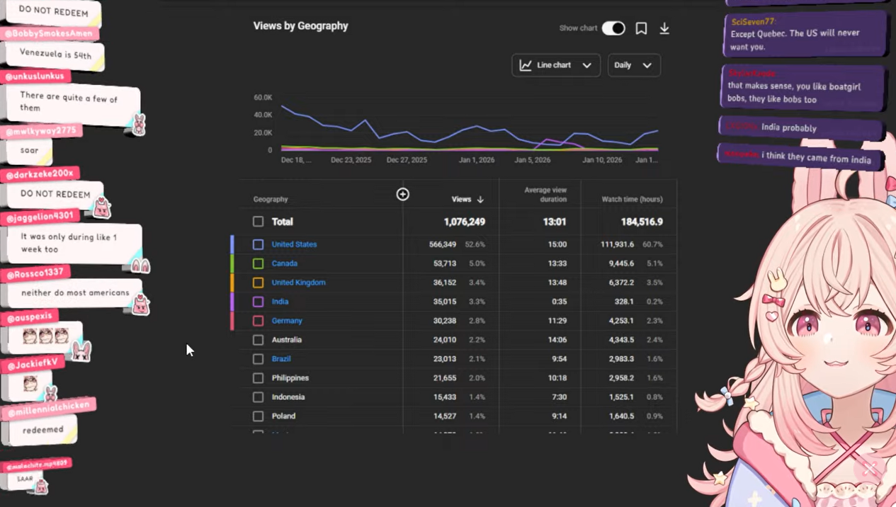 >>108644741>>108644745ok so like 2 white countries watch pippa for <10% of viewersHer fans make a whole lot of sense now