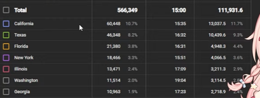 >>108645173Texas, Florida, and Georgia's watch times are inflated because Pippa doesn't have to compete with Pornhub in those states.