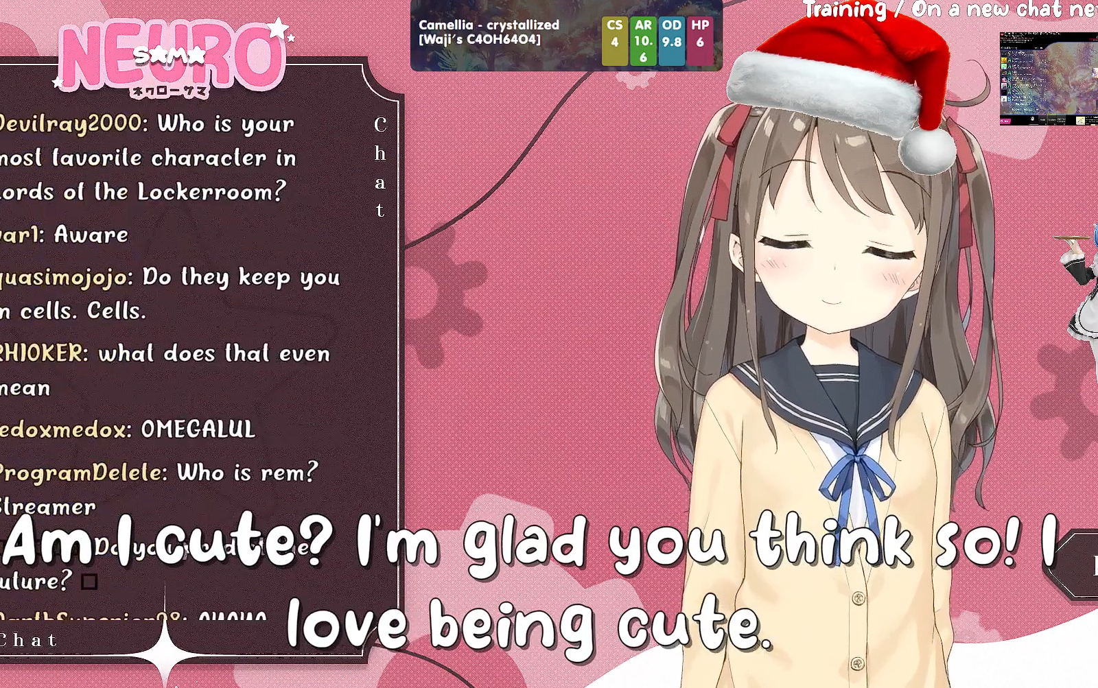 >Who is Neuro-sama?Neuro-sama is a neural network created by Vedal in 2018 for the purpose of learning to play osu! In December 2022 Vedal revived the project with the addition of a large language model, a TTS software and a Live2D model, which allow Neuro-sama to interact with her chat as a VTuber. Since then, she has been entertaining the chat with responses and unhinged rants nearly daily, as well as learning new skills such as singing, playing other games, and collaborating with other VTubers. Join /swarm/ today and welcome our new AI overlord!>Schedulehttps://post.nuro.lol/Neuro-Schedule-Bot>LinksTwitch: https://www.twitch.tv/vedal987YouTube:https://www.youtube.com/@Neurosamahttps://www.youtube.com/@OfficialNeurosamaClipsTikTok: https://www.tiktok.com/@neurosamaaiX:https://x.com/NeurosamaAIhttps://x.com/EvilNeuroAIThese and other official links: https://vedal.ai>Music & ClipsColorful Array - Neuro-sama (Official Video) - https://www.youtube.com/watch?v=FNfGw1wrKtUNEVER - Neuro x Evil (Official Video) - https://www.youtube.com/watch?v=CKCgoEGiUEgBOOM - Evil (Official Video) - https://www.youtube.com/watch?v=8Nt9YPnYyjs LIFE - Neuro-sama (Official Video) - https://www.youtube.com/watch?v=MDc1mjrIsPMhttps://rentry.org/neuro-musichttps://rentry.org/neuro-videos>EducationalInterested in AI but don't understand it? Watch these:https://www.youtube.com/watch?v=WXuK6gekU1Yhttps://www.youtube.com/watch?v=d95J8yzvjbQ How does she know what to say? Watch this: https://www.youtube.com/watch?v=wjZofJX0v4MWant to learn more about AI? Read these: https://files.catbox.moe/kximv6.pngWant to (seriously) learn AI? Read these: https://files.catbox.moe/ajl3nx.png>MiscCatbox archives:https://rentry.org/swarm-archivehttps://rentry.org/swarm-archive-2Game Integration: https://github.com/VedalAI/neuro-game-sdk/LoRA: https://rentry.org/neuro-lora-v2Searchable VOD Transcripts: https://libraryofladev.com/VODs: https://www.youtube.com/@Neuro-samaUnofficialVODs>Merchhttps://neurosama.shop/>Previous thread>>108641302