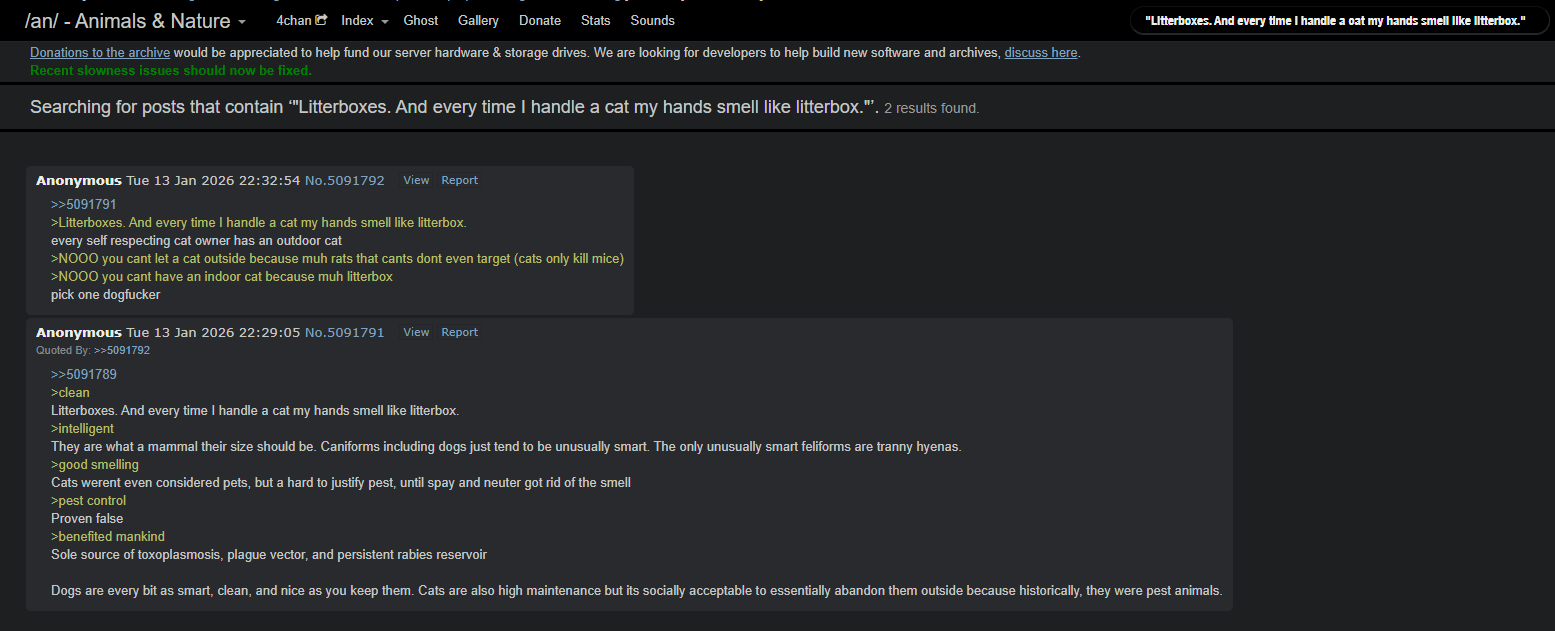 >>108661629I wanted to know that too, but I don't think they have a way to report posts. Eventually I just stopped using warosu and started using a different archive, I don't want to see that shit.