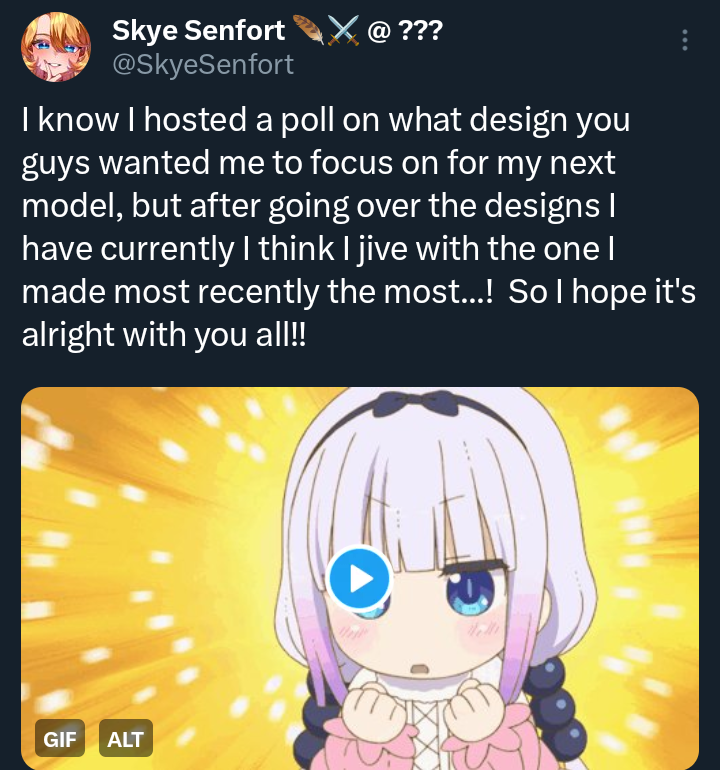 >>108685284I don't take it as permanent. I can't take anything she says to heart. It's why I can't have any investment in her. The only consistent part of her character is Linux autism and Twitter meltdowns. No thanks.