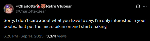>>108676392I'll be honest when I watch that clip it turns me on because it feels like she knows and enjoys the effect she is having on us so that seems appropriate