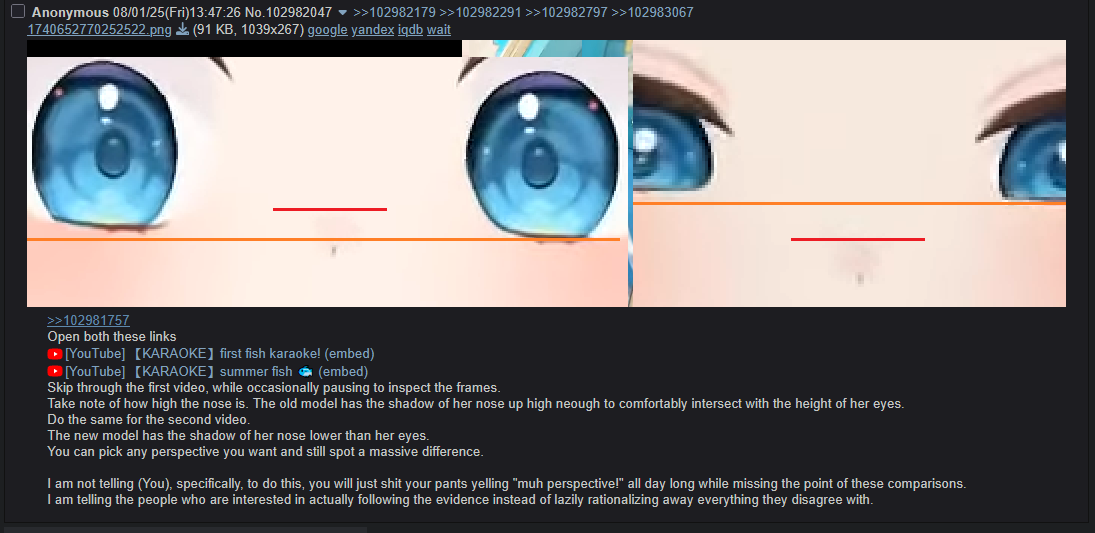 >>108680950It's hard to tell because of the angle change but there seems to be some difference in jaw structure. Maybe it's because of the inclination