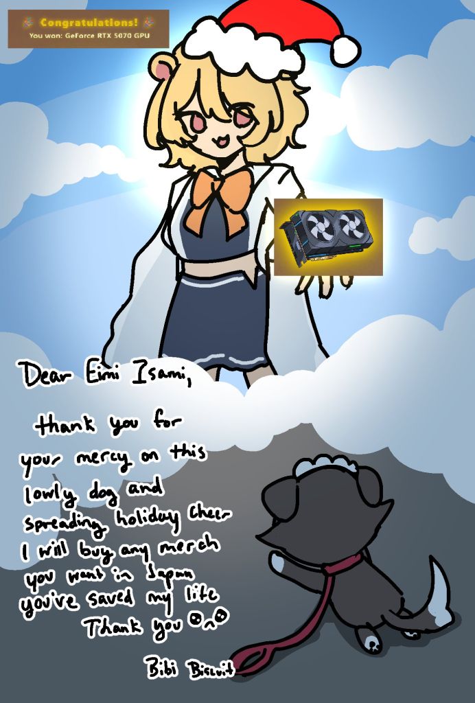 >>108690374They should be delivered around the same time as the Christmas merch.
