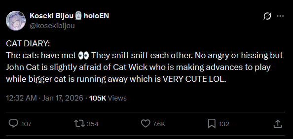 >>108692946JAN 2026 EN GOLD1/1 - IRyS - Unarchived Karaoke Relay: 22,4071/2 - Zotto - 3D Live: 18,3301/3 - Raora - Return Stream: 16,8421/4 - IRyS - Black Mesa: 16,1511/5 - Bijou - Warframe: 13,2061/6 - Meloco - Agree: 49,5251/7 - Bijou - Warframe: 12,9081/8 - Gigi - Subnautica: 15,0101/9 - Meloco - Powerwash Simulator 2: 15,1471/10 - Bijou - Outfit Reveal: 25,6741/11 - Bijou - Dark Souls 3: 17,3441/12 - Ina'nis - Agree: 13,7551/13 - Kronii - Routine: 13,6781/14 - Saba - Karaoke: 23,6671/15 - Saba - Hytale: 19,3321/16 - IRyS - Black Mesa: 13,8071/17 - Calliope - Sekiro Shadows Die Twice: 11,705PER COMPANY12x: Hololive English3x: Nijisanji English2x: IndieHOLOLIVE ENGLISH IS THREE GOLDS AWAY FROM WINNING THE MONTH.PER STREAMER4x: Bijou3x: IRyS2x: Saba, Meloco1x: Calliope, Gigi, Kronii, Raora, Ina'nis, ZottoMORI CALLIOPE BECOMES THE FOURTH TALENT OF JANUARY TO WIN ALL CATEGORIES, ALONGSIDE GIGI MURIN, KOSEKI BIJOU AND OURO KRONII.