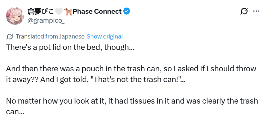 >>108706947yeah but she still does them which adds insult to injury when she ghosts like usual. the overall point is mari's been on a decline especially since joining phase and she doesn't seem to care at all.