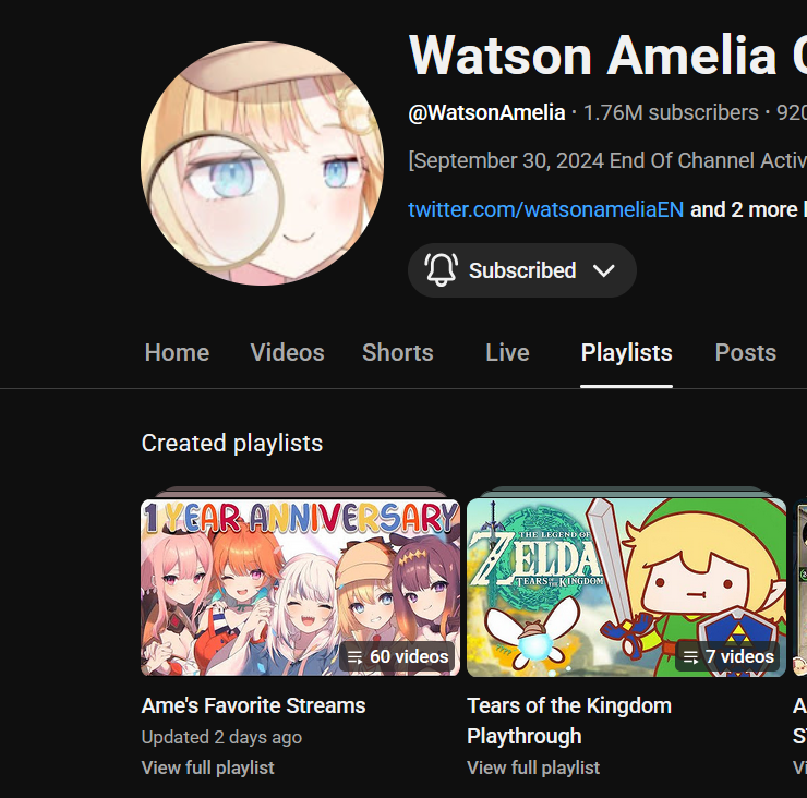 >>108719754Management hasn't touched her channel, Youtube did something two days ago that made some playlists appear as "updated" even though they haven't.