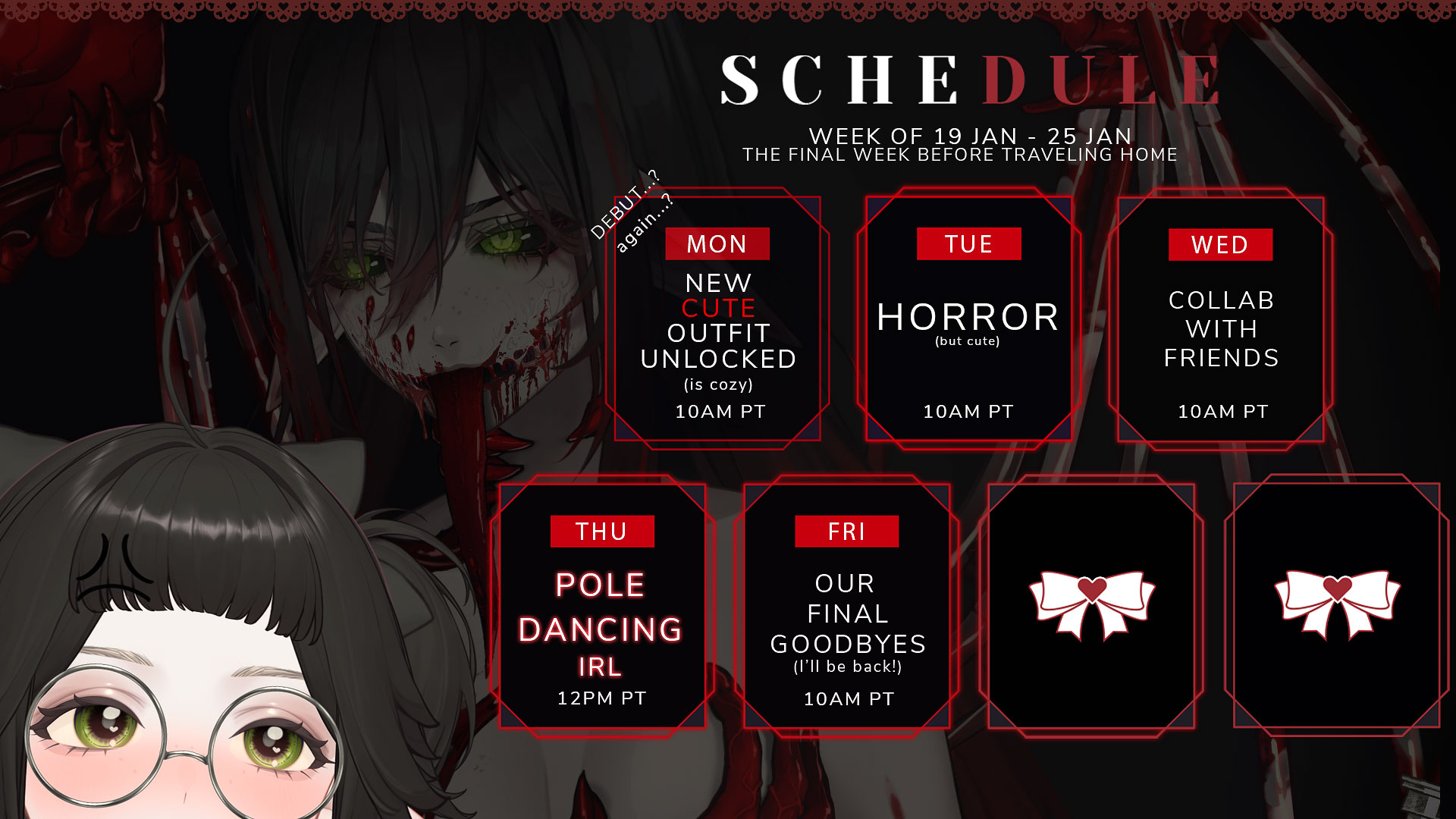 >>108719920Who? Riri? She was literally live this morning and even got some liveposters here for some reason. Elfin? No, she announced she was gonna fuck off then backtracked then fucked off again and is still gone.