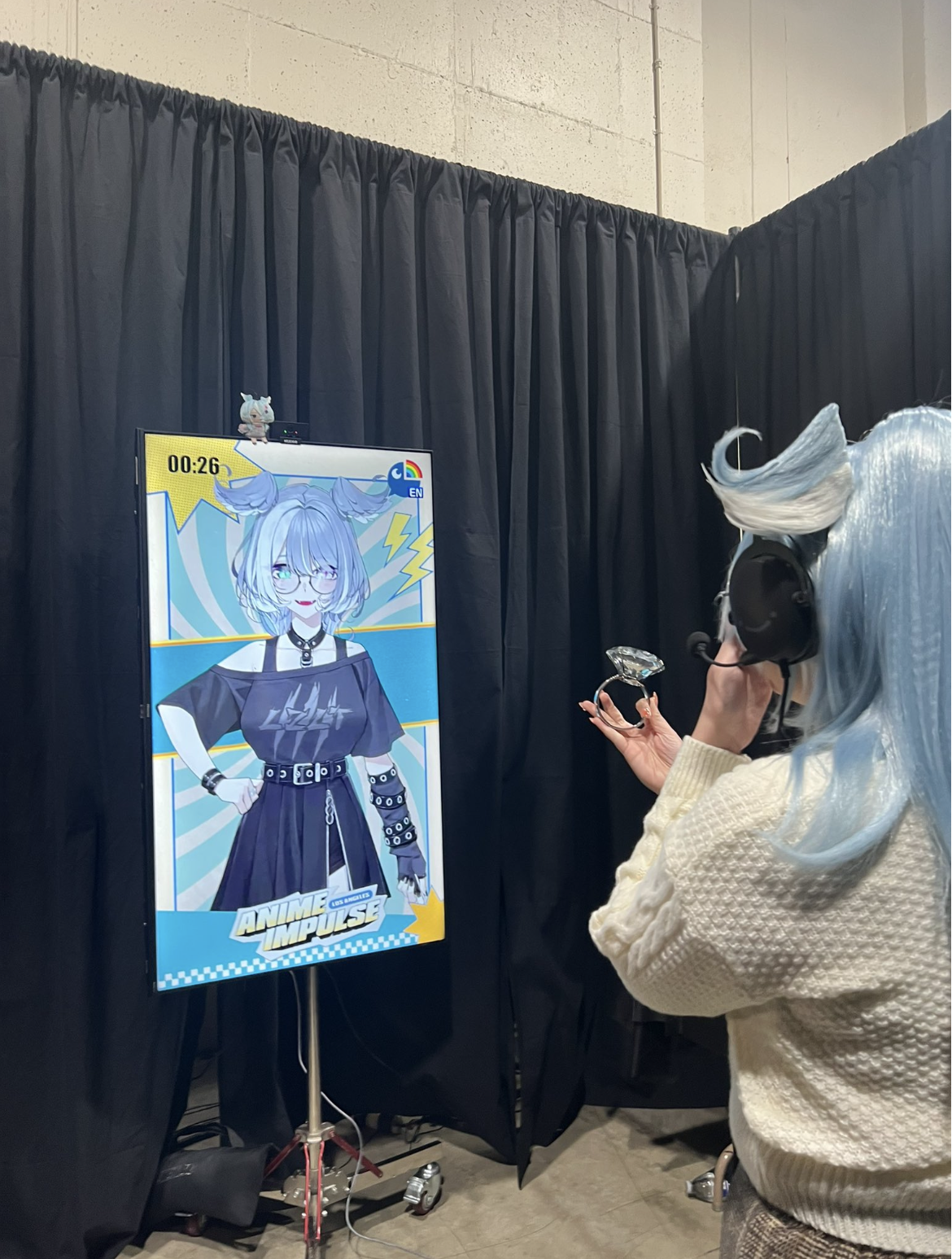 I think I found it the information about the technology for the 3D meet and greets.https://www.sony.jp/spatial-reality-display/casestudy/anycolor/Sony wrote up a case study of what looks like a test they did of the technology previously at one of Deron's concerts last year.Mr. Higuchi himself later mentioned the following during a live stream:During the 1-on-1 talks after the live show, I spoke with a fan who won the premium ticket. We used this new technology then. You know, it's something you can only describe with your own eyes. It's incredible, really. Honestly, I think only those who've experienced it can understand. When you see photos of the experience, it looks flat, but with the naked eye, it's three-dimensional, you know? So when I reached out my hand, it felt like it could actually reach everyone. Honestly, it did reach them.Man, technology has come so far. Apparently, this was the world's first time a VTuber used this in a 1-on-1 talk. I never imagined it would be this amazing either. The fans were like, “Wow, this is amazing! Wait, how is this even possible!?” But apparently, there are only a handful of these new-tech displays in the world right now.