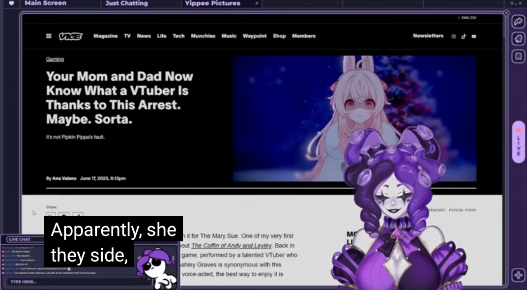 >>108734580nyara is a 3view VTuber.She has a twitch channel and would not be able to have a conversation/debate with if she weren't.