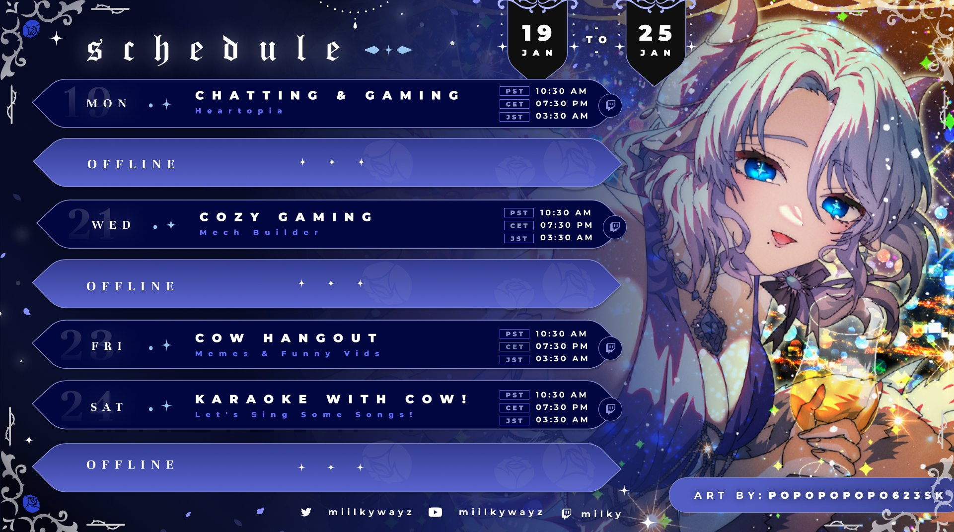 BatAtBreakfast Edition >What is /lig/?/lig/ is a thread for viewers to find, share, and discuss indie vtubers who have on average 500 viewers or more.>Why /lig/?Large indie vtubers have more net fans, but they are outnumbered by 2views by the thousands. This is a thread for the VIP, regardless of what language they stream on.>Can I shill my 499view oshi here?Considering averages fluctuate widely, all the way down to 100 is reasonable. The minimal requirement however is being Twitch partner or the YouTube equivalent in numbers.>Wait isn't that one a corpo?/lig/ is a thread for chuubas of a decent size who aren't defined by their corporate branding, either due to the small size of the corporation or the independence and lack of oversight granted to the talents>/lig/ Numbershttps://lignumbers.neocities.org/>Twitch Clips Guidehttps://pastelink.net/34vd5>VOD Archival Guidehttps://rentry.org/Vod_Archival_Guide>/lig/ VOD Archivehttps://rentry.org/Indie_Vod_Archives_lig>Koikatsu cardshttps://mega.nz/folder/JYtkXJwL#07gAQCQqI_9FsmX9oQJKSA>/lig/ Wheel of Nameshttps://wheelofnames.com/5jh-93j>Tiermakerhttps://tiermaker.com/create/-lig--16586688-3>/lig/ Chuuba Birthday Calendar (WIP)https://www.canva.com/design/DAE-XgWodVg/ofLz4QC1yPPQ4T6TTAE0fw/edit?utm_content=DAE-XgWodVg>Upcoming BirthdaysJanuary 22nd - Lily HopkinsJanuary 24th - YuzuJanuary 25th - /lig/February 4th - Matara KanFebruary 5th - Bodega RatFebruary 9th - Meat & wwParasiFebruary 13th - KokonutsFebruary 14th - ReiyuguiguiFebruary 15th - SaaFebruary 18th - Moon JellyFebruary 22nd - HinaBoBina>OC material for the OPhttps://mega.nz/folder/IIVD1IaJ#cfsRhWdJvzneIoG8HZUPuw>/lig/booruhttps://ligbooru.moe/>Duckshttps://www.twitch.tv/dashducks Other useful threads:>>>/vt//big/>>>/vt//corpo/>>>/vt//choc/>>>/vt//flip/>>>/vt//haha/>>>/vt//indie/>>>/vt//mint/>>>/vt//swarm/>>>/vt//vrt/>>>/vt//xvsj+/Previous Thread: >>108735029