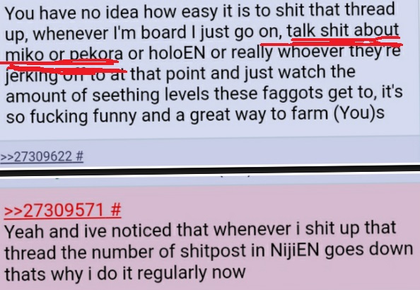 >>108747819jp antis winningthey magnificently uses the dissatisfaction some holofags have with management (graduations among other things) to side with them by positioning her as management's pet and peddles those retards that Miko is bad because of delusional conspiracies between her, other talents and management.