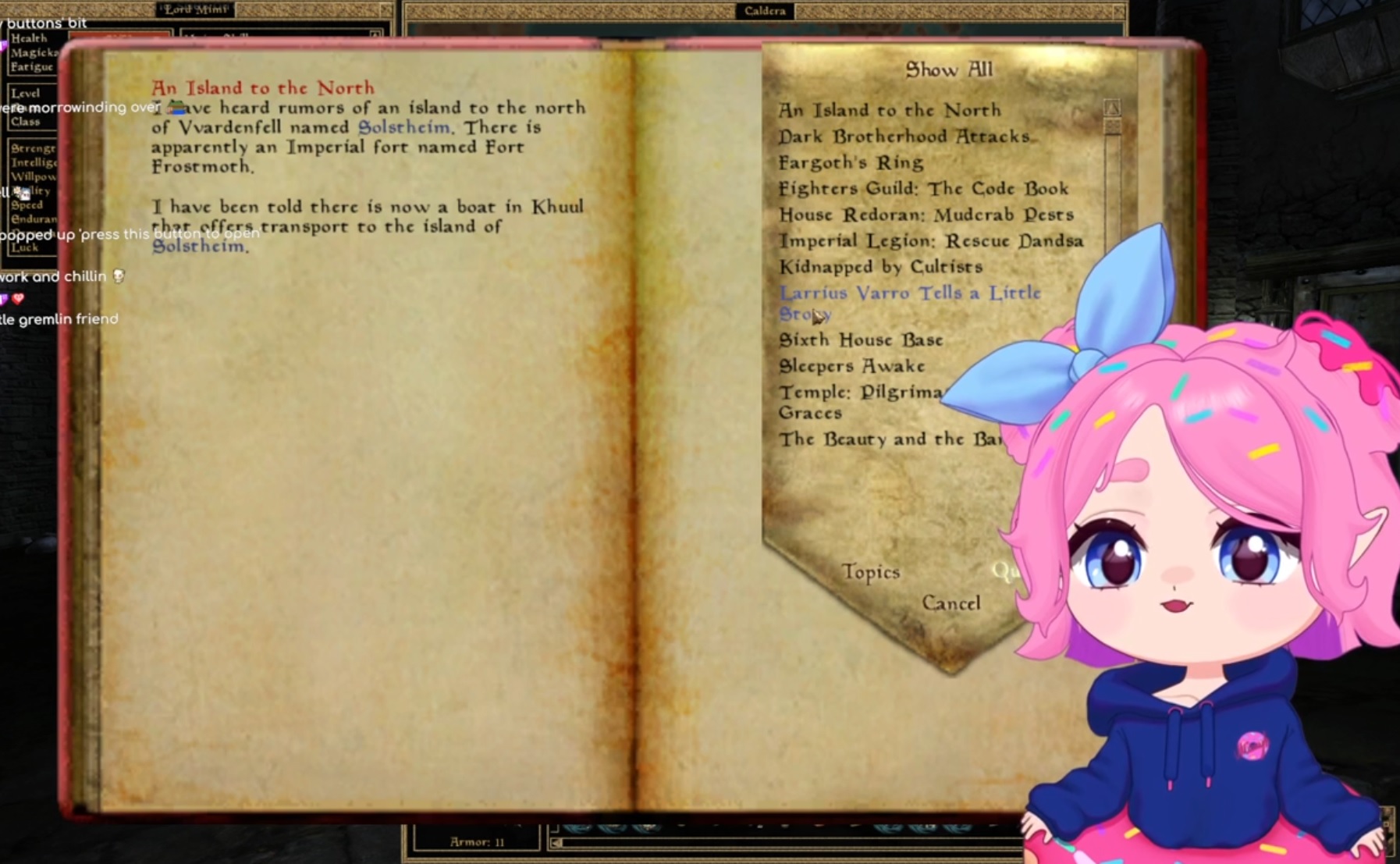 Aussie with a pink donut Mimyh is playing Morrowind, one of her favorite gameshttps://www.twitch.tv/mimyh