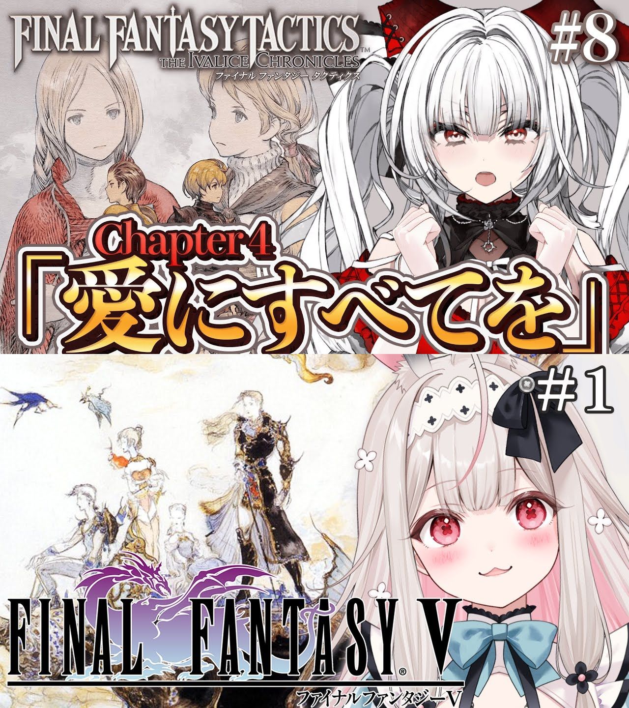 Serenade Oxblood 16:00 "Final Fantasy Tactics" #8https://www.youtube.com/watch?v=u8fK8cXP-2cUnohana Nonochi 17:00 "Final Fantasy 5" #1https://www.youtube.com/watch?v=jywwpKlp2eM