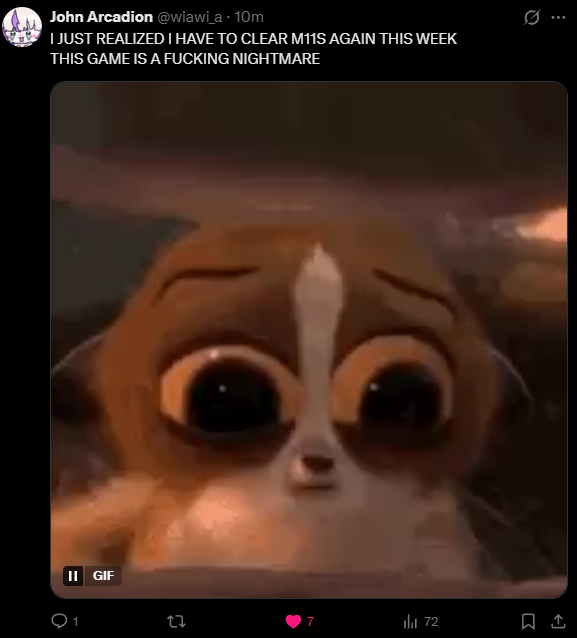 she's going to prog M12S through party finder on SundayI pray for her mental health
