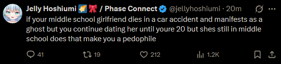 >>108755161>i totally slay bro that's why i watch virtual anime women>s-she goes to another school trust me