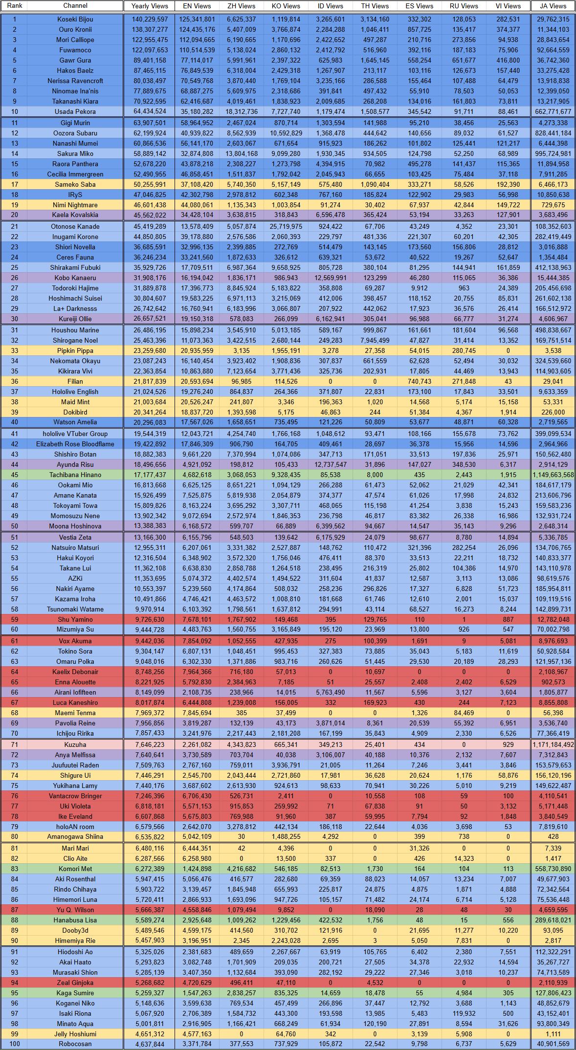 >>108783739>>108783983FWMC actually gets a ton of EN clip views. Justice get way less in comparison to Advent. The yearly view column excludes JP clips. You add that to it and they pull ahead of everyone in holoEN