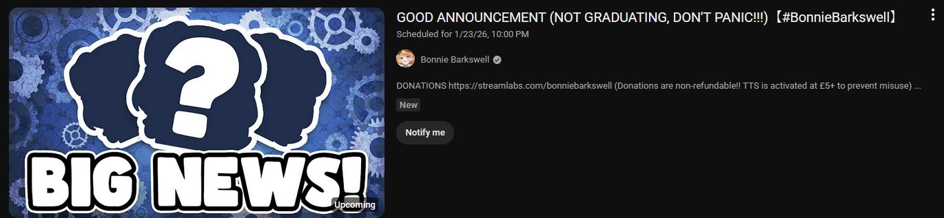 This is how I expect Dizzy will announce her graduation and she'll try to act cool about it in the first 5min but then break down into a sobbing mess saying she thinks she's making a mistake, delete the vod and then redebut 3 years later.