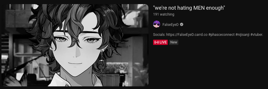 >>108782320But they are still men, and this is what men like. There would be more men watching but they don't want to be associated with the stigma that comes with watching Nijisanji. That's the only reason.