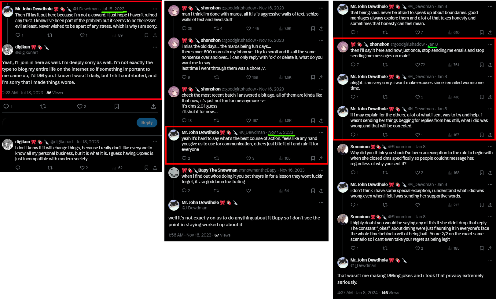 >>108789972because the trolling has been legitimized and has lead to multiple regulars including shondo being harassed and hurt and mentioning the same names in the same thread is not anti behavior whereas defending the perpetrators and minimizing the harm caused and attacking those who speak up about it is and we know it's other regulars perpetrating this trolling and abuse because we see them get away with it in chat, so the alt accounts banned in entranceway are a start but a deflection from the bigger issue that doesn't get dealt with like the alts do>>108789996so you agree that it's bad though right? and it's arguably not even hypocritical to reference them when they were already brought up in the same thread