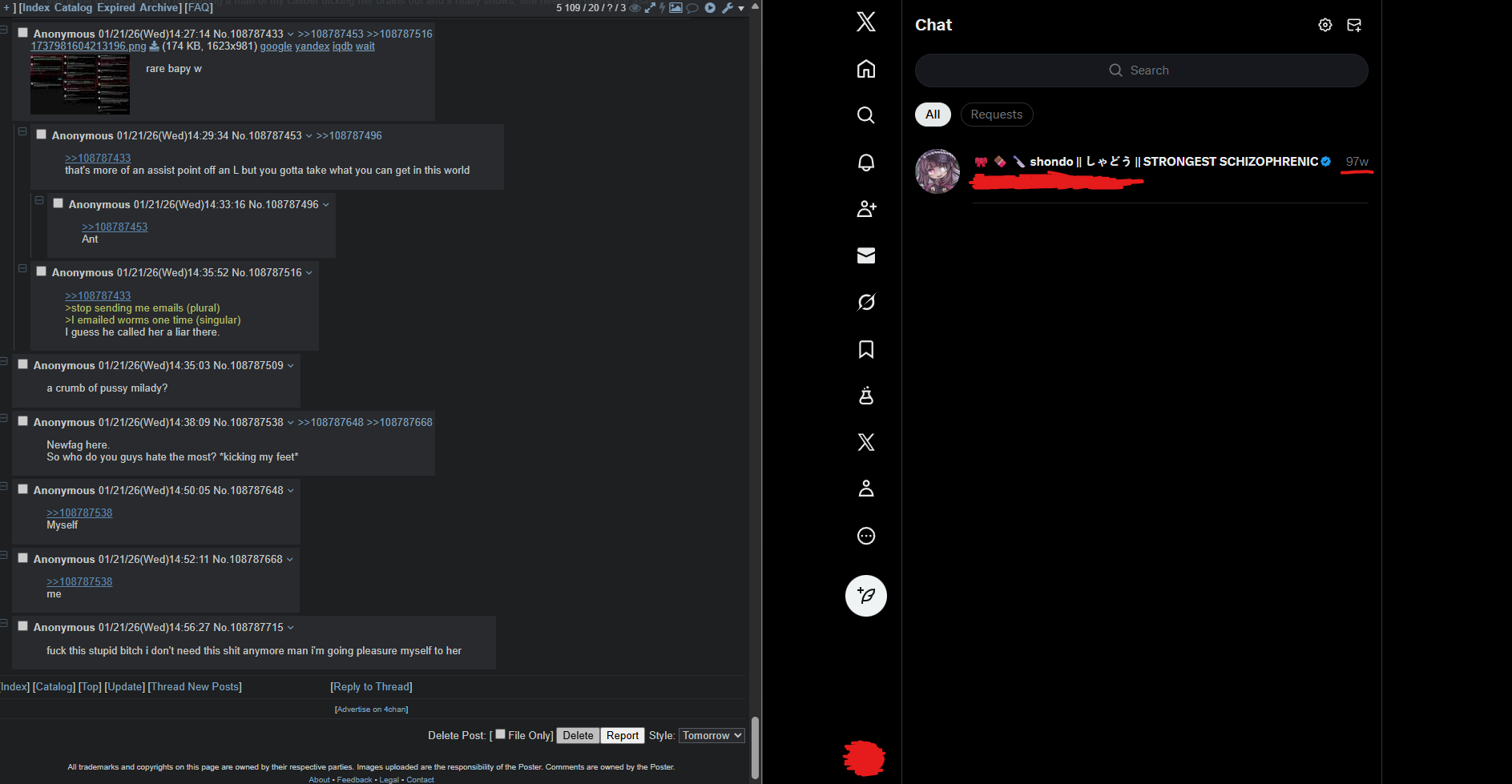 >>108790099hypocritical about what? that mentioning uninvolved regulars is harmful? so you then agree on that as well and thus find the behavior of those mentioning them first in this thread more harmful or just as harmful and you hold them accountable as well, right? or are you retarded and not consistent.>>108790117true i guess if you ban the newfags and regulars who get harassed then there's no one being harassed "in the community" anymore and we can forget about all the times before when they were >>108790131i didn't drag them into /here/ that was the people who have suspiciously left the thread now that you've appeared>trying to legitimize iti mean people literally get doxxd over this stuff so i think the only problem is trying to de-legitimize actual harm that's been caused and is being caused for years now