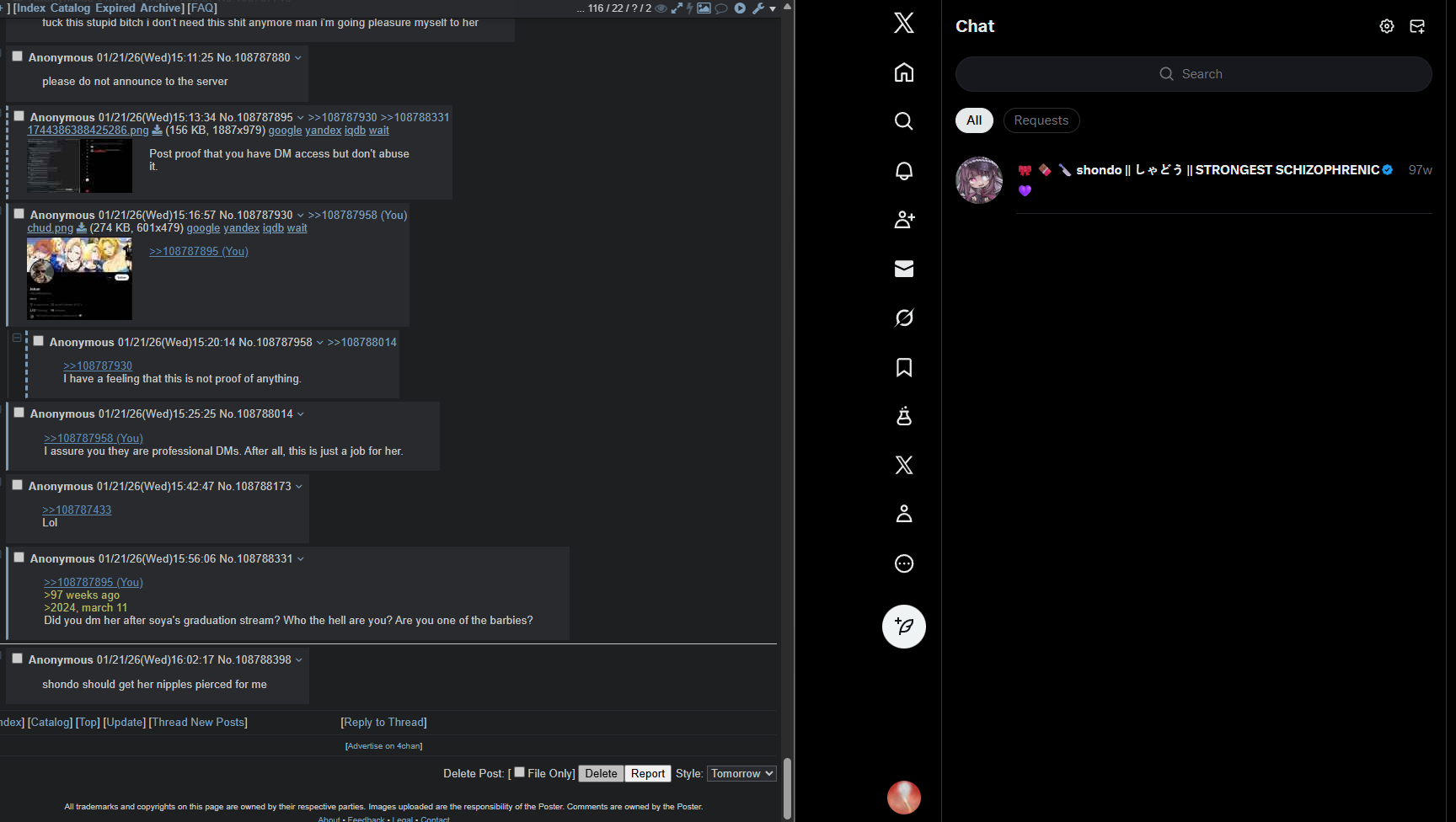 Funny that Vtubers I barely know and have never supported gives me much more attention than Shondo does. They've even said many times that they love me, unlike her. I feel scammed after donothon.Thanks to my money she went to Japan in very young age - most people can't afford trip like that. But she always acts like she's the victim, “hurr durr I'm 2x years old and I'm a virgin, this is so sad”Shut the fuck up, most of your fans are over 30 and have never touched a woman and never will.Im only waiting for my merch, after that i will resell it and use that money to support someone who actually deserves it, someone with normal community without sikret clubs like pw7, favouritism and daily dramadumping because she needs to go outside 2 times per week