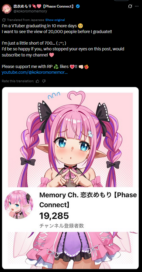 Help Memory get to 20k before she graduateshttps://x.com/kokoromomemory/status/2013791836209635642