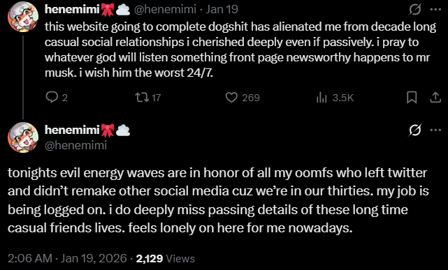 >>108780666He's mad because she posted something about hating nazis, he was kicking off about it this morning
