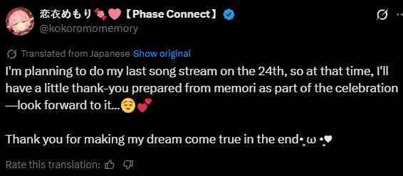 Memory said yesterday that if she were to graduate and reincarnate somewhere else it would be somewhere worth leaving Phase for (Hololive)