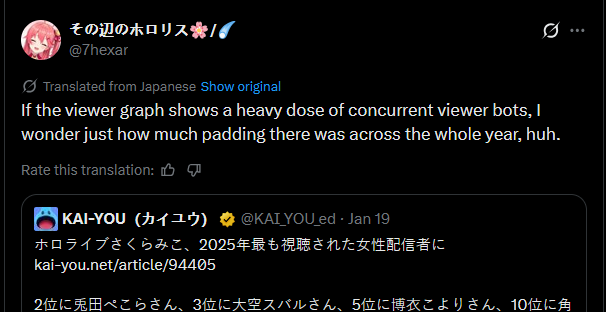 That doesn't match with what we've seen for merch sales and stock, Miko and Pekora are both pretty close in stock numbers and I think only Marine is higher. Clearly they both have a lot of paying fans.