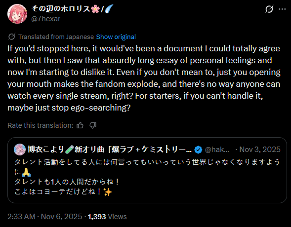 This will only stir things up even more if it's related to the Miko situation. Because Cover either won't or can't go after the accounts that actually do damage. Nice job fucktards.