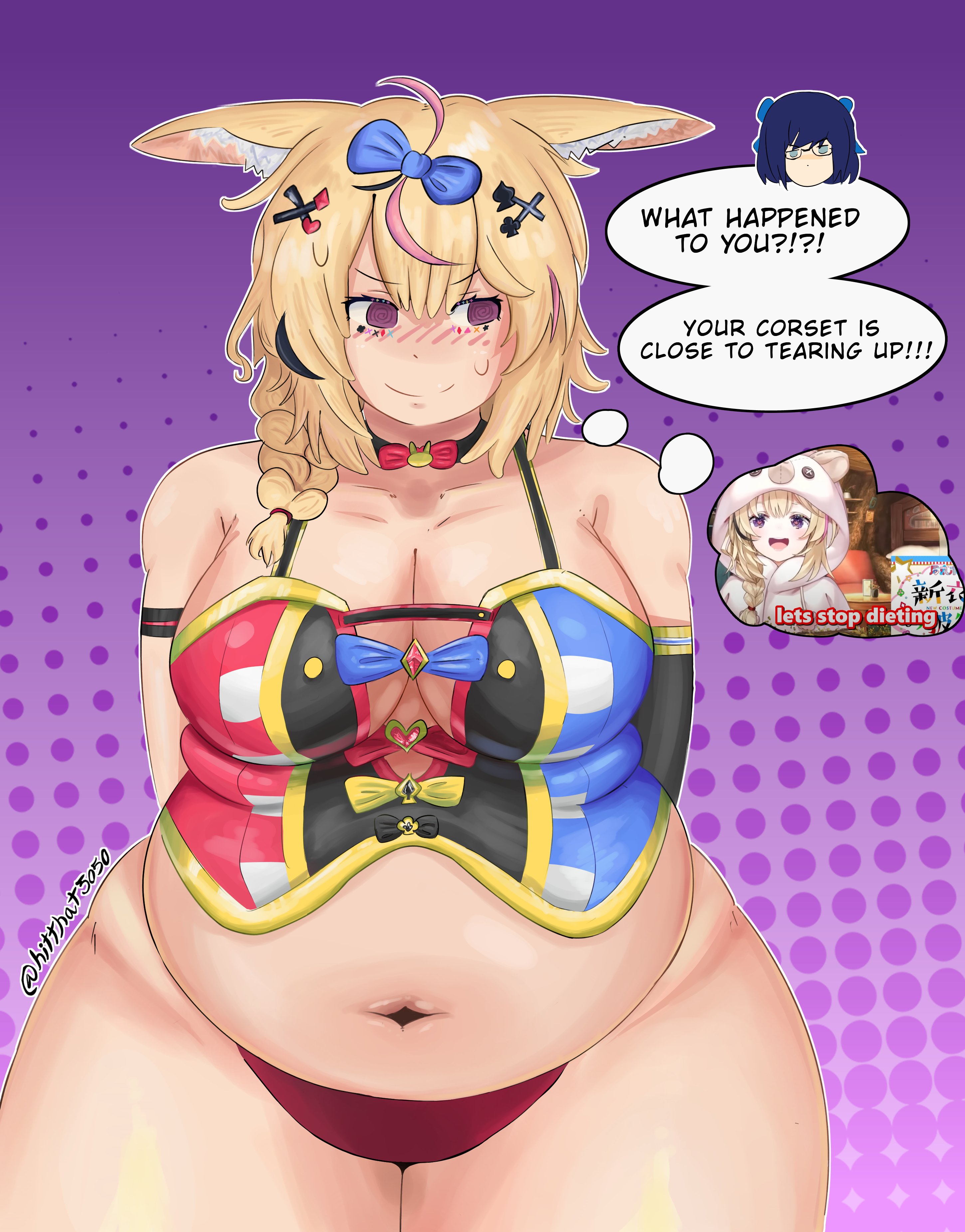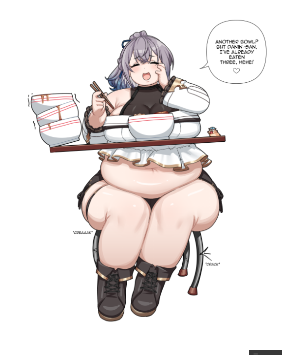 so with the Noel slime idea, i want it to be where she's eating a bunch of slimes, believing it to improve her strength and dex, but it changes her into a build thats all strength no mobilityTL;DR she becomes fat as fuck by eating slimes