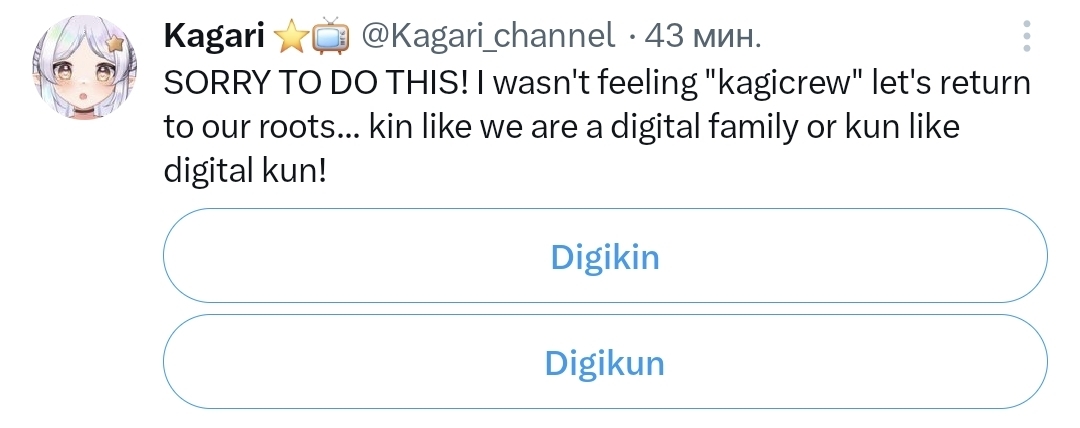 Speaking of Kagari, she didn't feel like kagicrew for her slime friends so new poll https://x.com/i/status/2014111369394634988