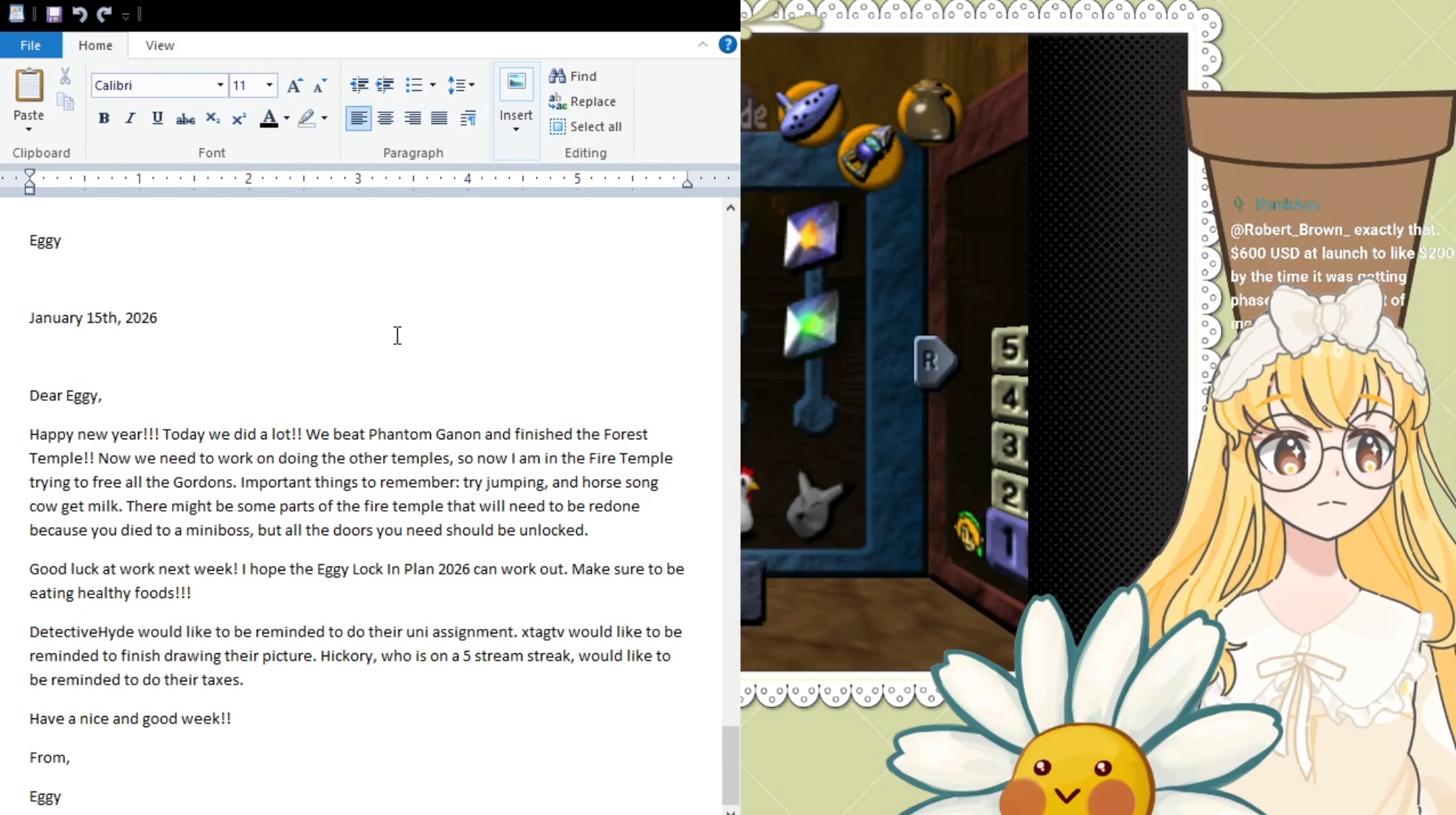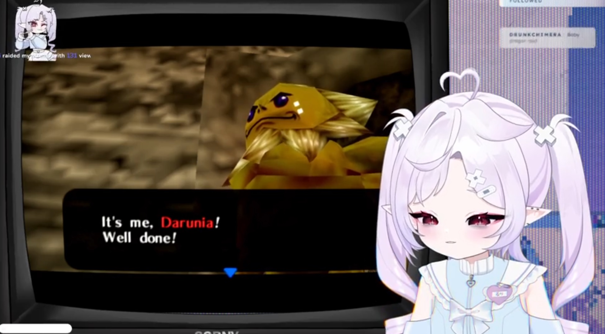 Marie de l'Oeuf the eggtuber is live and continuing The Legend of Zelda Ocarina of Time after yapping. She's currently getting ready to rescue the "gordons".https://www.twitch.tv/niceeggy