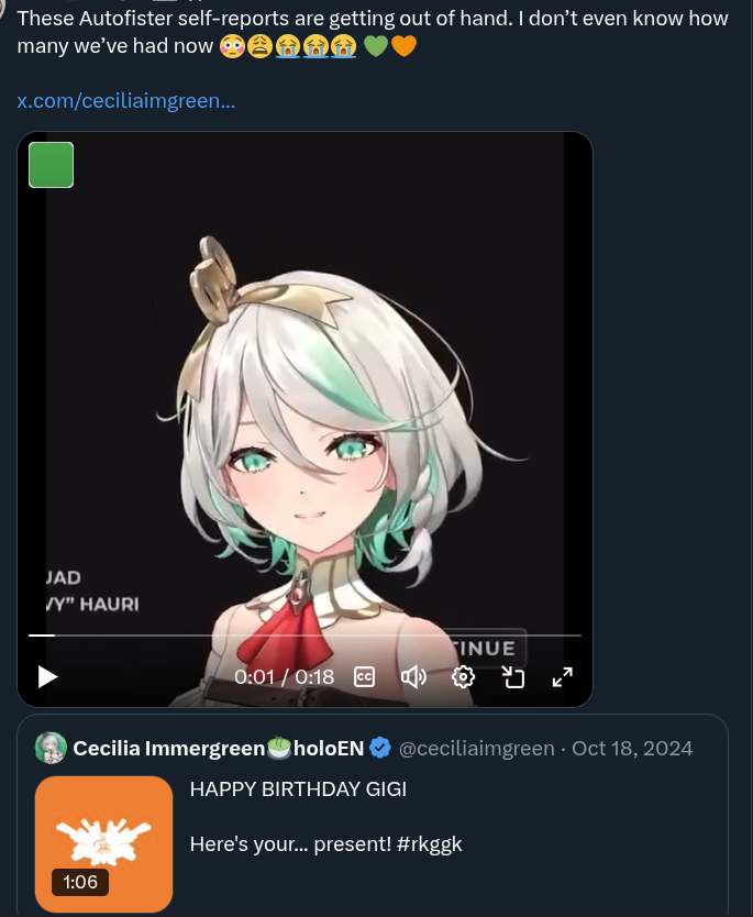 >>108814320>Praised a cosplayer of herself made from AI slop>Taotan noticed and said how AI is improving and is doing her work better than her>Bae apologized for falling to AI slop>Bae later tells Tao that she's better than any machine>Bae is tao's oshi and she got a fire on her ass now and is gonna cosplay more bae>Most likely is sending lewds to bae rnThat's it